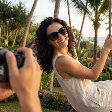 Model jest bardzo minimalistyczny w swojej formie i przez to uniwersalny pod kątem okazji i stylizacji. Ozdobne elementy na końcu zauszników mogą pełnić funkcję estetyczną, ale też praktyczną - tam możesz przypiąć łańcuszek (kupiony osobno) - jeśli lubisz takie akcenty.