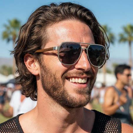 Połączenie nowoczesności i naturalnego charakteru. Model, który skradnie serce nie tylko mężczyzn, ale też kobiet. Metalowy front, ciemne szkła i zauszniki z drewna - możesz mieć pewność, że to wyjątkowy design, który szybko Ci się nie znudzi. Okulary świetnie sprawdzą się zarówno podczas jazdy samochodem, jak i na letni spacer, czy festiwalowe szaleństwo.