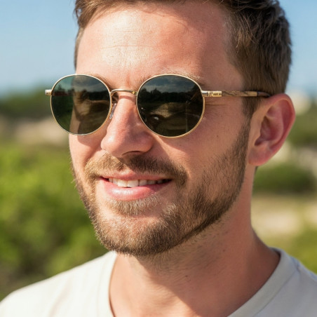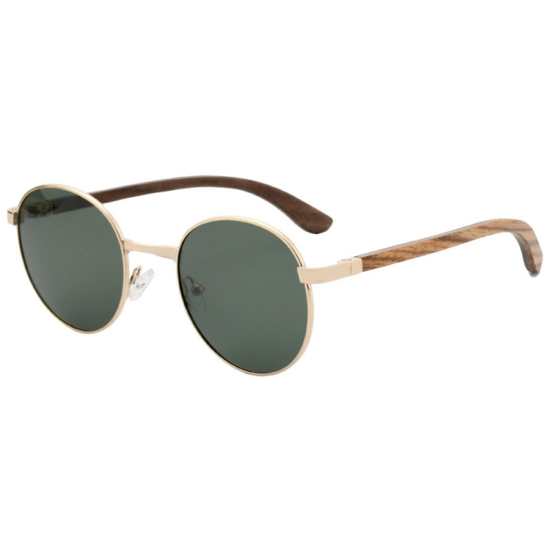Cenisz sobie klasykę? Lubisz ponadczasowe okulary? To właśnie jeden z takich modeli. Okrągły kształt, złota oprawka i zielone szkła - to jedno z najbardziej popularnych połączeń. Natomiast to co sprawia, że te okulary są wyjątkowe to cienki zausznik wykonany z prawdziwego drewna. W ten sposób możesz zyskać okulary niebanalne okulary na wiele sezonów.