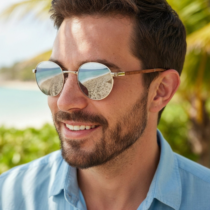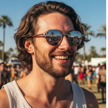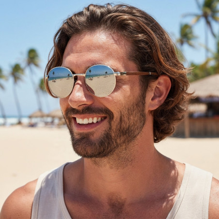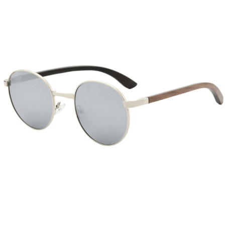 W tych okularach przeciwsłonecznych odbija się dosłownie wszystko! A to zasługa srebrnych szkieł z lustrzaną powłoką, która dodaje tajemniczości. Po za tym to model ponadczasowy ponieważ kształt lenonek jest zawsze modny. Wyjątkowym elementem są tutaj zauszniki z drewna, które są wizytówką marki Gepetto.