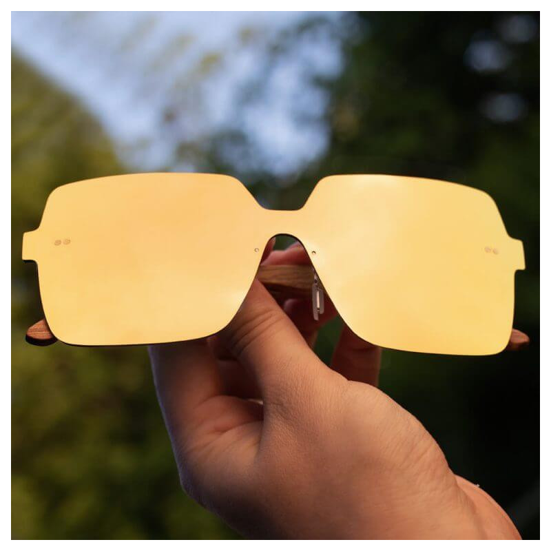Lubisz czuć się jak milion dolarów? Ten model został stworzony dla osób, które nie boją się wyróżnić, a złoty to ich ulubiony kolor. Okulary oversize pasują do praktycznie każdej twarzy i sprawiają, ze twarz wydaje się mniejsza. Szkła z efektem lustra robią wrażenie, a zauszniki z drewna dodają wyjątkowości. Skusisz się na model Ofelia Gold?
