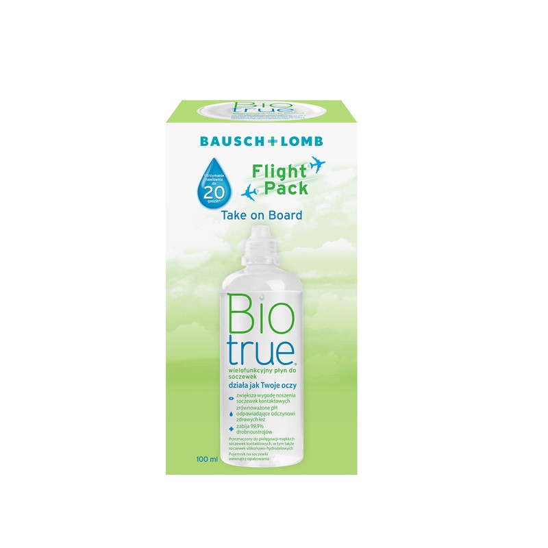 jest inspirowany biologią oka, dlatego jako użytkownik możesz liczyć nawet na 20 godzin komfortu. W płynie Biotrue zastosowano również podwójny system dezynfekcji, by Twoje soczewki kontaktowe były chronione podwójnie.