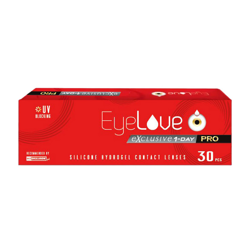 To nowoczesny produkt silikonowo-hydrożelowy przeznaczony do noszenia w trybie jednodniowym. Dzięki zastosowanej konstrukcji asferycznej zapewnia on klarowne widzenie, a filtr UV oraz wysoka przepuszczalność tlenu dostarcza zdrowie i wygodę dla oczu. Poznaj soczewki jednodniowe EyeLove Exclusive 1-Day PRO, które skierowane są do osób z krótkowzrocznością.