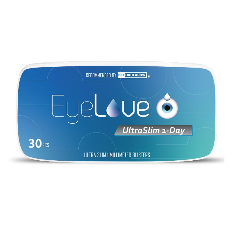 Soczewki kontaktowe inne niż wszystkie - takim zdaniem można podsumować jednodniowe EyeLove UltraSlim 1-Day. Ich blister ma zaledwie 1 mm grubości a po otwarciu soczewki są ustawione zewnętrzną częścią do góry, byś mógł jeszcze szybciej założyć je na oczy.