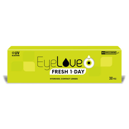 Dla fanów komfortowych i delikatnych soczewek hydrożelowych mamy propozycję jednodniowych EyeLove Fresh 1-Day. Te wysoko uwodnione szkła kontaktowe jednorazowego użytku sprawdzą się zarówno u osób, które użytkują je codziennie, jak u tych, które noszą je naprzemiennie z okularami.