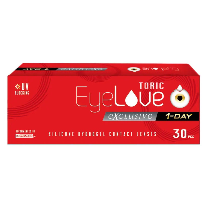 EyeLove Exclusive 1-Day Toric to nowoczesne, jednodniowe soczewki silikonowo-hydrożelowe zaprojektowane specjalnie dla osób z astygmatyzmem. To rozwiązanie najnowszej generacji, które łączy precyzyjną korekcję wzroku z troską o zdrowie oczu. Wysoka tlenoprzepuszczalność materiału wspiera naturalne funkcjonowanie rogówki, a wbudowany filtr UV zapewnia dodatkową ochronę każdego dnia.