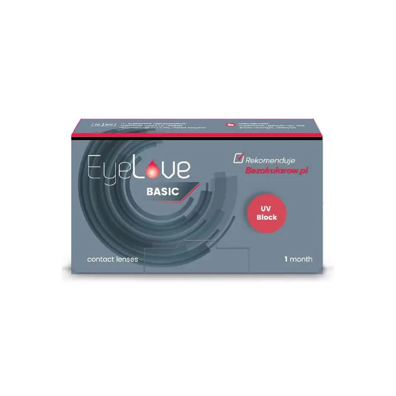 EyeLove Basic to nowość wśród soczewek hydrożelowych do noszenia w trybie miesięcznym. Łączą wysoką jakość z atrakcyjną ceną, zapewniając komfortowe i zdrowe użytkowanie przez cały dzień. Soczewki korygują krótkowzroczność i dalekowzroczność, a delikatny materiał hydrożelowy o 50% uwodnieniu gwarantuje miękkość i komfort noszenia. Dodatkowo filtr UV chroni oczy przed szkodliwym promieniowaniem słonecznym.